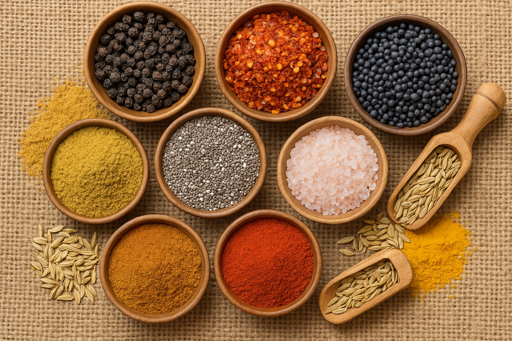 Toptan Köfte Baharatı, köftelere dengeli bir tat verir. Toptan Tavuk Baharatı ise tavuk yemeklerini lezzetlendirir.